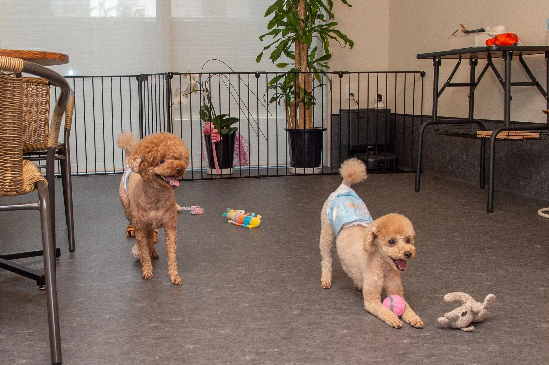 お客様とわんちゃん、トリマーの関係性も末永くお世話になることが多いサロンで、わんちゃん同士も顔見知りになることもあり少し臆病な子でも顔なじみの子やお友達ができるとまた嬉しく思います!ご利用いただいておりますお客様も自分の子も他のお客様の子も分け隔てなく可愛がって頂ける素敵な飼主様が多く、完全予約制の為、混み合うこともありませんので、ご新規の飼主様もご利用しやすい環境を整えています。